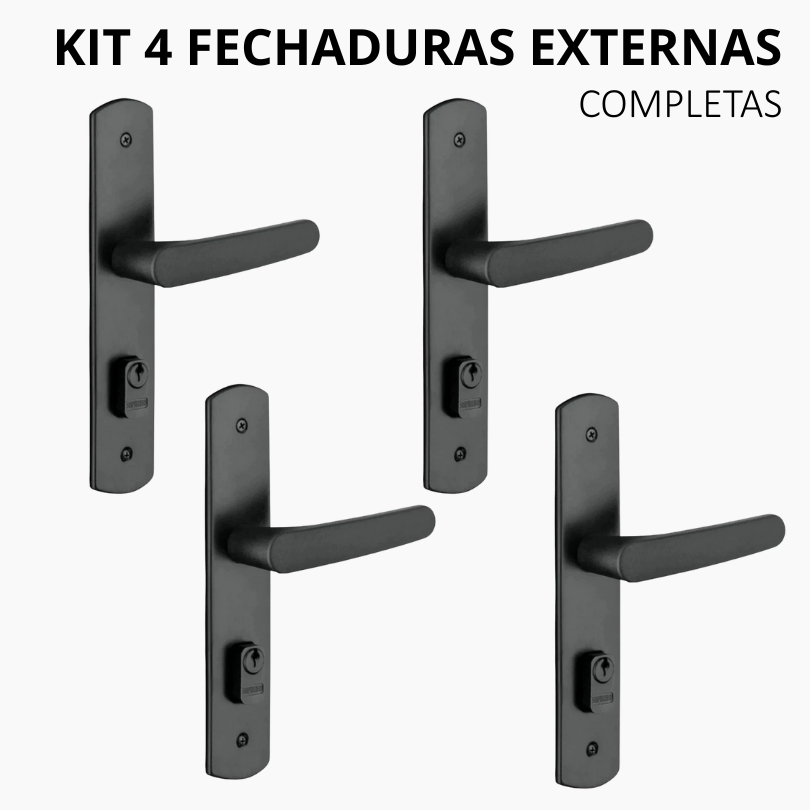 Kit 4 Fechaduras Porta Externa | Modelo Ipanema Reta | Preta | Soprano