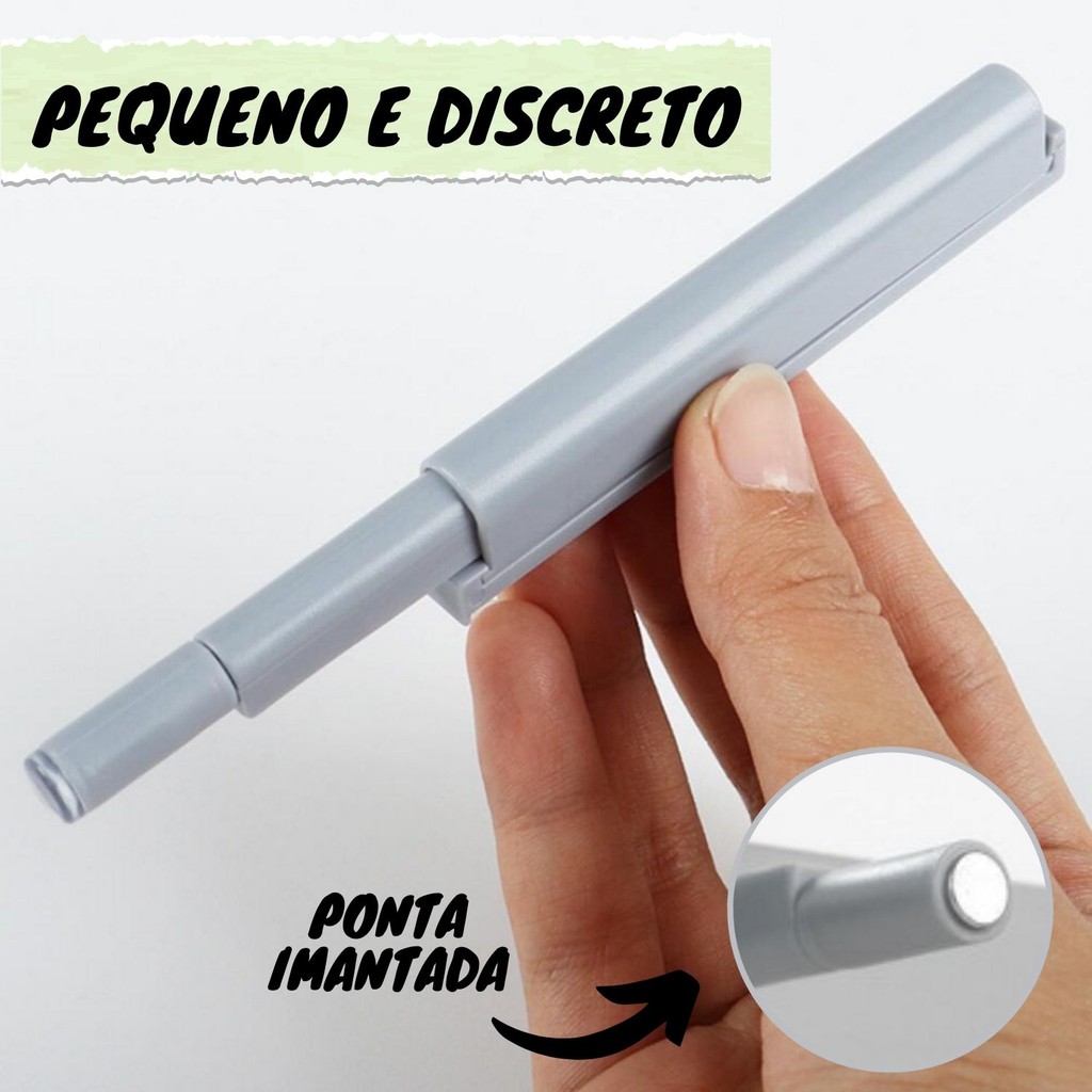 Kit 4 Fecho Pulsador Magnético Cinza Toque Sobrepor Tip-on Push Open Porta Armário Gaveta Feicho toc Sistema Click
