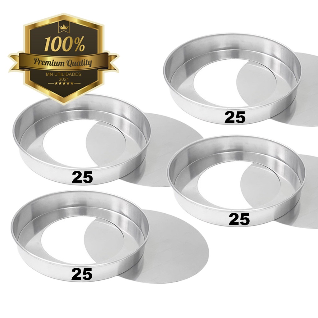 Kit 4 Forma Assadeira Fundo Falso Removível 25x5 Alumínio