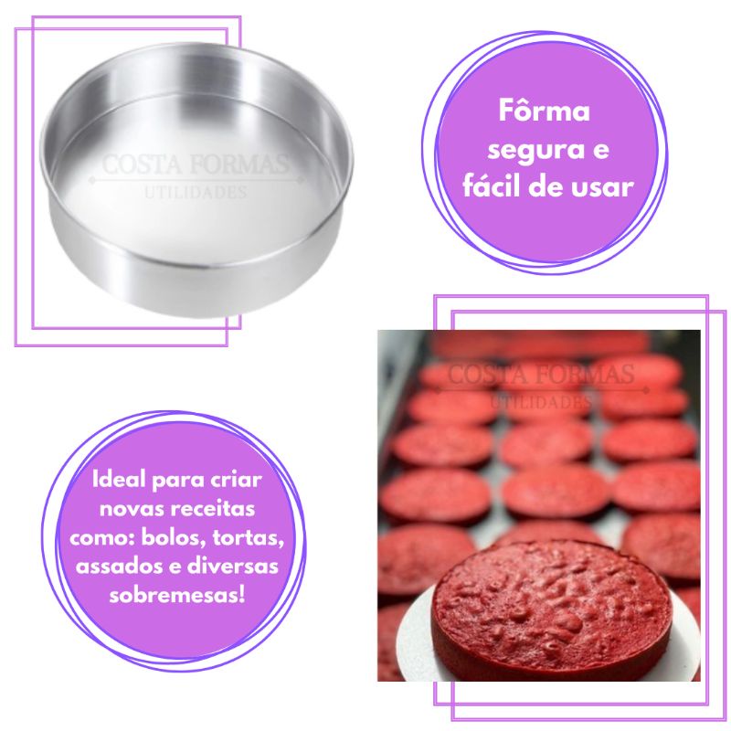 | Kit 4 Formas Redondas 25x5 cm Fundo Fixo em Alumínio Jogo de Assade... este produto | R$ 69,90 | — | 4.9/5 | — |