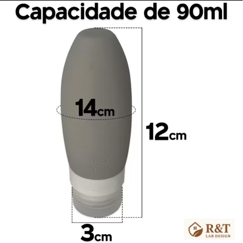 | Kit 4 Frasco De Cosmetico 90ml Silicone Para Viagem Portatil Shampo... este produto | R$ 20,57 | 53% | 5.0/5 | 4 |