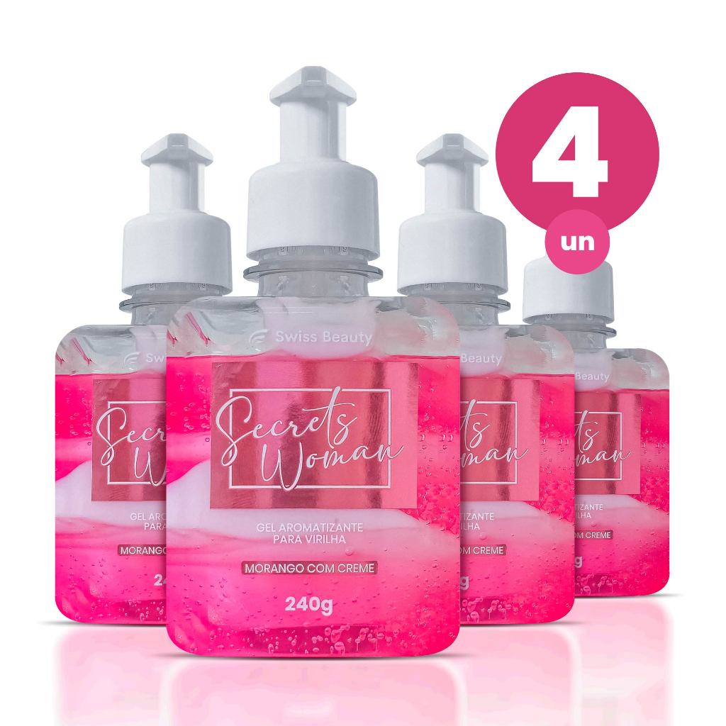 Kit 4 Gel Aromatizante Beijável Íntimo Sabor Morango com Creme para Saúde e Cuidado Vaginal 240g Swiss Beauty Belkit