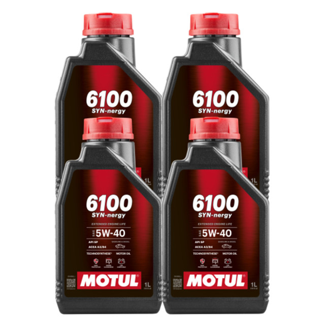 MOTUL 6100 SYN-NERGY 5W-40 4 LITROS Lubrificante Technosynthese® para alta performance e alta proteção. Atende aos níveis modernos e exigentes das normas API e ACEA. Protege contra os riscos de pré-ignição LSPI (Pré-ignição em Baixa Velocidade). Adequado para todos os tipos de combustíveis: Gasolina com ou sem chumbo, Etanol, GLP, Diesel e biocombustíveis. Qualidade: Technosynthese Homologações: BMW LL-01, CHRYSLER MS 12991, CHRYSLER MS 10725, CHRYSLER MS 10896, FIAT 9.55535-H2, FIAT 9.55535-M2, FIAT 9.55535-N2, FIAT 9.55535-Z2, PORSCHE A40, PSA GROUPE PSA B71 2296, RENAULT RN0710 - RN0700 ACEA: A3/B4 API: SERVICE SN