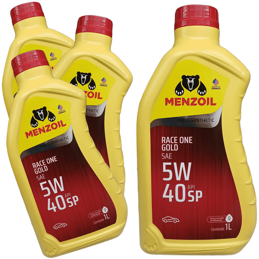 Kit 4 Litros Óleo Sintetico para Motor Race One Gold 5W40 Menzoil Código: 010103094X4 Desenvolvido para minimizar os danos causados pelo contato das peças. Especificacoes: Api Sp, Api Sn Plus, Api Sn-Rc, Ilsac Gf-6A Desenvolvido para minimizar os danos causados pelo contato das peças. Com a mais avançada tecnologia, o lubrificante 100% sintético alcana rapidamente todos os espaços do motor, reduz o nível de atrito e mantém a limpeza constante, Com o motor trabalhando sem esforço e com menos fricção interna, o resultado é economia de combustível e ótimo desempenho. Benefícios x Características: Ajuda a proteger os motores de alta performance da formação de depósitos que prejudicam o desempenho e a eficiência do motor. Ajuda a remover os depósitos de borra deixados por lubrificantes inferiores Baixo consumo de óleo.