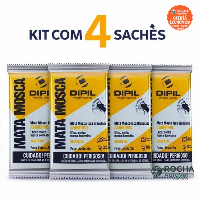 | Kit 4 Mata Mosca Dipil Isca Granulada 25g Elimina Moscas Domésticas este produto | R$ 21,90 | 37% | 4.9/5 | — |
