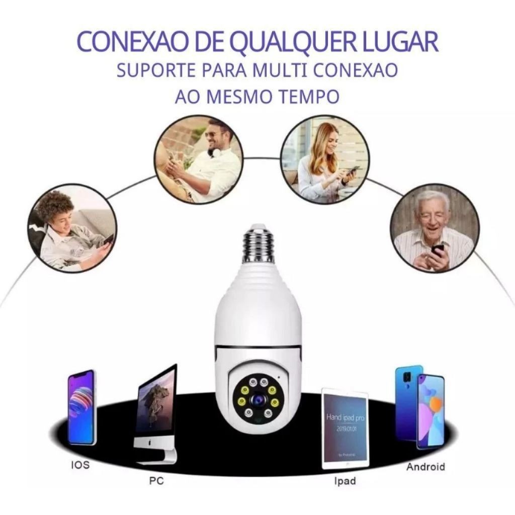 Descrição Do Produto A MAIS COMPLETA E AVANÇADA DO MERCADO COM SENSOR DE MOVIMENTAÇÃO, ALARME E INFRAVERMELHO PARA VISÃO NITÍDA EM TOTAL ESCURO COM ALARME E SENSOR DE MOVIMENTAÇÃO QUE ALERTA NO CELULAR OU EMAIL **ATENÇÃO** Aplicativo de uso YOOSEE ou YYP2P Pode ser usada em ÁREA EXTERNA PROTEGIDA de sol e chuva lugares como área de varanda ou sacadas desde que não esteja com lente exporta a luz do sol e ou respingos de chuva pois essa câmera e projetada para ambiente interno! Recurso de alarme sirene Aviso por email e alerta por aplicativo, programação personalizada horário gravação e ou ao detectar movimentação no ambiente grava e tira foto que são armazenada no Cartão de memória que deve ser inserido no slot da câmera. - Esta câmera possui a tecnologia mais avançada atualmente para monitorar e cuidar de sua casa ou seu trabalho. - Ideal para utilizar em casa monitorar crianças, idosos, animais como recurso de babá eletrônica. - E também no trabalho para monitorar seu escritório, funcionários veículos. - Sistema Extremamente simples de instalar; - Tem o tamanho de lâmpada de led comum, discreto; - Conecta-se a sua rede wifi e a partir daí você pode visualizar e interagir de qualquer lugar do mundo através do seu celular ou tablet; - Aplicativo apenas para Android ; - Possui microfone para ouvir o som ambiente e auto falante para você poder falar com as pessoas no ambiente; - Você pode gravar ou fotografar a qualquer momento em seu telefone ou tablet; - Usando cartão SD a câmera vai gravando continuamente Por ela possuir motor pan tilt gira em uma visão de 360º, apenas uma câmera consegue cobrir uma área bem maior do que uma câmera comum, consegue cobrir uma área onde seria necessário aproximadamente 4 câmeras! Você consegue girar a imagem e ângulo através do Celular e controlar o zoom. A instalação é muito simples, basta ligada a tomada elétrica conectar sem fio via wireless ou cabo de rede RJ45. (necessita rede Wi-Fi ao alcance) A imagem pode ser vista ao vivo em seu SmartPhone (Android) App Home Care É possível acender a luz remotamente através da internet, conversar com quem esta na sala (voce ouve tudo o que esta sendo falado onde esta a câmera e também é possível falar no seu smartphone e o som sai no auto falante da câmera) Características: IP Câmera 360 graus panorâmica pan tilt 2.0 Megapixel 1280x960P alta definição, Lente 3.6mm com aplicativo de controle e visualização pelo telefone móvel com Android. Controle de luminosidade através do celular, 2 vias de áudio (pode falar e ouvir, através da câmera), Controle de inclinação e Zoom, com slot para cartão de TF até 128 GB de armazenamento de vídeo de qualidade. - Sensor CMOS 2 Megapixel 1280x960P - Câmera com lente Fisheye grau 3,185 - IEEE802.11b/g/n sem fio - HD 960P 2.0Megapixel - P2P nuvem, através do App do celular - Audio 2 vias Intercomunicação - Zoom digital Pan/Tilt - Suporte SD Card Max 128GB - Boquinha Bocal E27 Itens incluso: 1 Câmera IP Robozinho E27 1 Manual Model Name:8165hp Registration ID:11128-23-14013 Maximum Aperture:1.2 Number of Cameras Included:1 Pack Size:1 Security Camera Style:Dome Memory Card Type:Micro Sd Digital Zoom:4 Mininum Aperture:22 Recorder Channel Capacity:16 Dimension (L x W x H):20*20*7 Warranty Duration:No Warranty Bundle Set:No Frame Rate:30 Quantity:1 Has BSMI No.:No Optical Zoom:4 Item Type:Cctv Camera Manufacturer:Anjgg Warranty Type:No Warranty Video Capture Resolution:720p Security Camera Features:Infrared Night Vision Bundle Set:No Frame Rate:60 Security Camera Features:App Support Dimension (L x W x H):15x6.5x6.5 Number of Cameras Included:1 Warranty Duration:1 Month Warranty Type:Supplier Warranty Video Capture Resolution:1080p Recorder Channel Capacity:1 Has BSMI No.:No Optical Zoom:4 Security Camera Style:Bullet Maximum Aperture:8 ISO Range:1 Pack Size:1 Model Name:Camera Lampada Item Type:Accessory Memory Card Type:Micro Sd Digital Zoom:4 Mininum Aperture:8 Quantity:1
