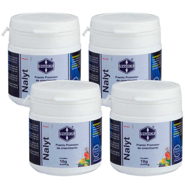 Kit 4 Nalyt 100 Plus 10g Amgercal Premix Vitamina Criador Canário Curió Bicudo Coleiro Trinca Ferro