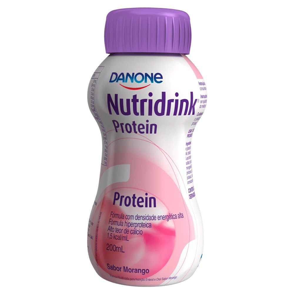 Kit com 4 unidades Nutridrink Protein Morango 200ml Nutridrink: Vitalidade* para a nova geração 50+ Nutridrink Protein Líquido é um suplemento pronto para consumo com 18g de proteínas, alto teor de cálcio e vitamina D, contribuindo para mais disposição1-3, força1-3 e imunidade3-5, proporcionando praticidade na sua rotina. O PRODUTO MENCIONADO NÃO CONTÉM GLÚTEN. Consulte sempre seu médico e/ou nutricionista. Características: - 18g de Proteína por Porção: Ajuda na manutenção e recuperação muscular, essencial para manter a força e vitalidade1-9. - Alto Teor de Cálcio e Vitamina D: Fundamentais para a saúde óssea e a função muscular, além de fortalecer o sistema imunológico4-9. - Alta Densidade Energética: Contribui para a melhora do balanço energético e proteico1-4,8. - Pronto para Beber: Prático e conveniente para incorporar na rotina diária. - Sabores Deliciosos: Disponível nos sabores baunilha, chocolate e morango. Ingredientes Proteína de leite, água, maltodextrina, caseinato de sódio, sacarose, óleos vegetais, citrato de potássio, cloreto de magnésio, fosfato tricálcico, carotenóides, cloreto de colina, óxido de cálcio, vitamina C, lactato ferroso, sulfato de zinco, óxido de magnésio, nicotinamida, vitamina A, gluconato de cobre, vitamina e, selenito de sódio, sulfato de manganês, D-pantotenato de cálcio, cloreto de cromo, D-biotina, vitamina D, B1, ácido fólico, B6, B12, molibdato de sódio, vitamina B2, fluoreto de sódio, iodeto de potássio, vitamina K, aromatizantes, emulsificantes, corante. *Vitalidade está associada ao consumo de nutrientes que contribuem com o ganho de força, disposição e imunidade presentes na formulação de Nutridrink, junto a uma rotina de hábitos saudáveis. O PRODUTO MENCIONADO NÃO CONTÉM GLÚTEN. Consulte sempre seu médico e/ou nutricionista.