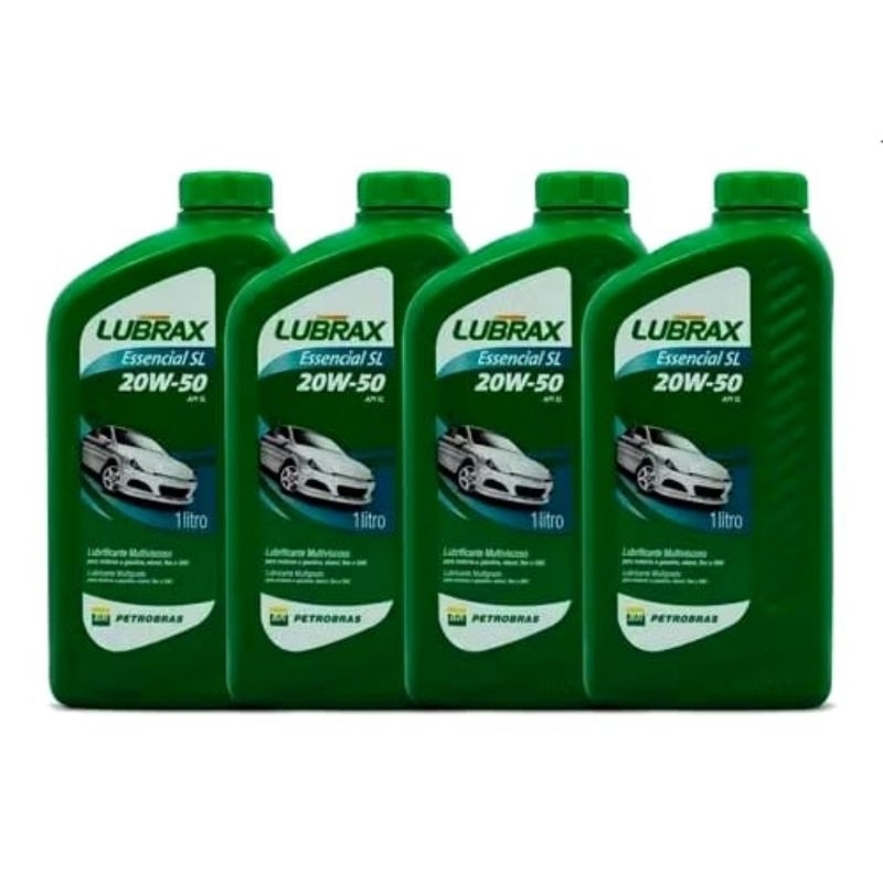 Este anúncio contém 4 unidades de Óleo 20w50 Lubrax; LUBRAX ESSENCIAL SL - SAE 20W-50. - O óleo é uma parte essencial para o bom funcionamento do motor do seu veículo, pois tem a função de limpar e lubrificar, buscando protegê-lo do desgaste e da corrosão. Lubrificante mineral para motores à gasolina/flex Descrição Óleo lubrificante mineral multiviscoso para uso nos motores a gasolina, etanol, flex e GNV que exigem lubrificante com nível de desempenho API SL ou inferiores. Grau de Viscosidade : SAE 20W-50. Aplicações LUBRAX ESSENCIAL SL é recomendado para uso em todos os motores a gasolina, etanol, flex e GNV de veículos nacionais ou importados com injeção eletrônica e multiválvulas, sendo compatível com os conversores catalíticos e atende ao nível de desempenho API SL. Especificações Lubrax Essencial SL atende ao seguinte nível de desempenho: API SL. Características e Benefícios - Oferece uma maior proteção contra a formação de borras e depósitos, mesmo a altas temperaturas, reduzindo o desgaste e a corrosão das partes lubrificadas; - Possui elevada resistência a oxidação e aditivação que confere ao óleo uma elevada estabilidade térmica; - Excelente desempenho em qualquer temperatura, permitindo partidas rápidas, mesmo a baixas temperaturas