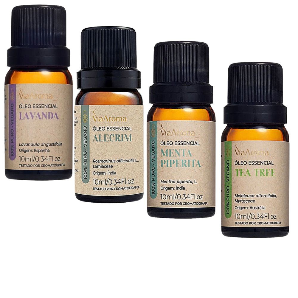 | Kit 3 Óleos Essenciais Via Aroma - Lavanda, Menta Piperita e Tea Tree | R$ 98,71 | 19% | 4.5/5 | 4 |