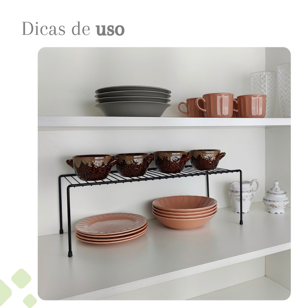 ***ORGANIZADORES A PRONTA ENTREGA, GARANTA JÁ O SEU!!! Como está a organização do seu armário? Precisa de mais espaço? Se for esse o seu caso, quero compartilhar uma dica com você =) A Tomelin Aramados pensou e desenvolveu produtos ideais para proporcionar organização nos armários da sua casa. É a solução ideal para acabar com o empilhamento das louças e deixar sua cozinha mais organizada e prática para o seu dia a dia. Além das funcionalidades, os organizadores da Tomelin Aramados possuem o visual moderno e clean deixando o ambiente lindo e prazeroso. E o melhor, não dependem de parafusos ou ferramentas para instalar, não é uma maravilha???!!! ****NÃO ESPERE, ADQUIRA JÁ O SEU ANTES QUE ACABE**** CONTÉM: 04 Organizadores de Armário Prateleira 51cm CARACTERÍSTICAS: Capacidade: 15KG Dimensões: 51 x 20 x 18 cm (C x L x A) Material: Aço Carbono Tinta: Epóxi Produto 100% Nacional ***** Foto meramente demonstrativa com sugestão de uso do produto***** Tags: organizador para armário; organizador para armario cozinha; suporte para xicaras; organizadores de armário; porta tampa de panela; porta utensilios branco; organizar multiuso; Garantia: • Tomelin