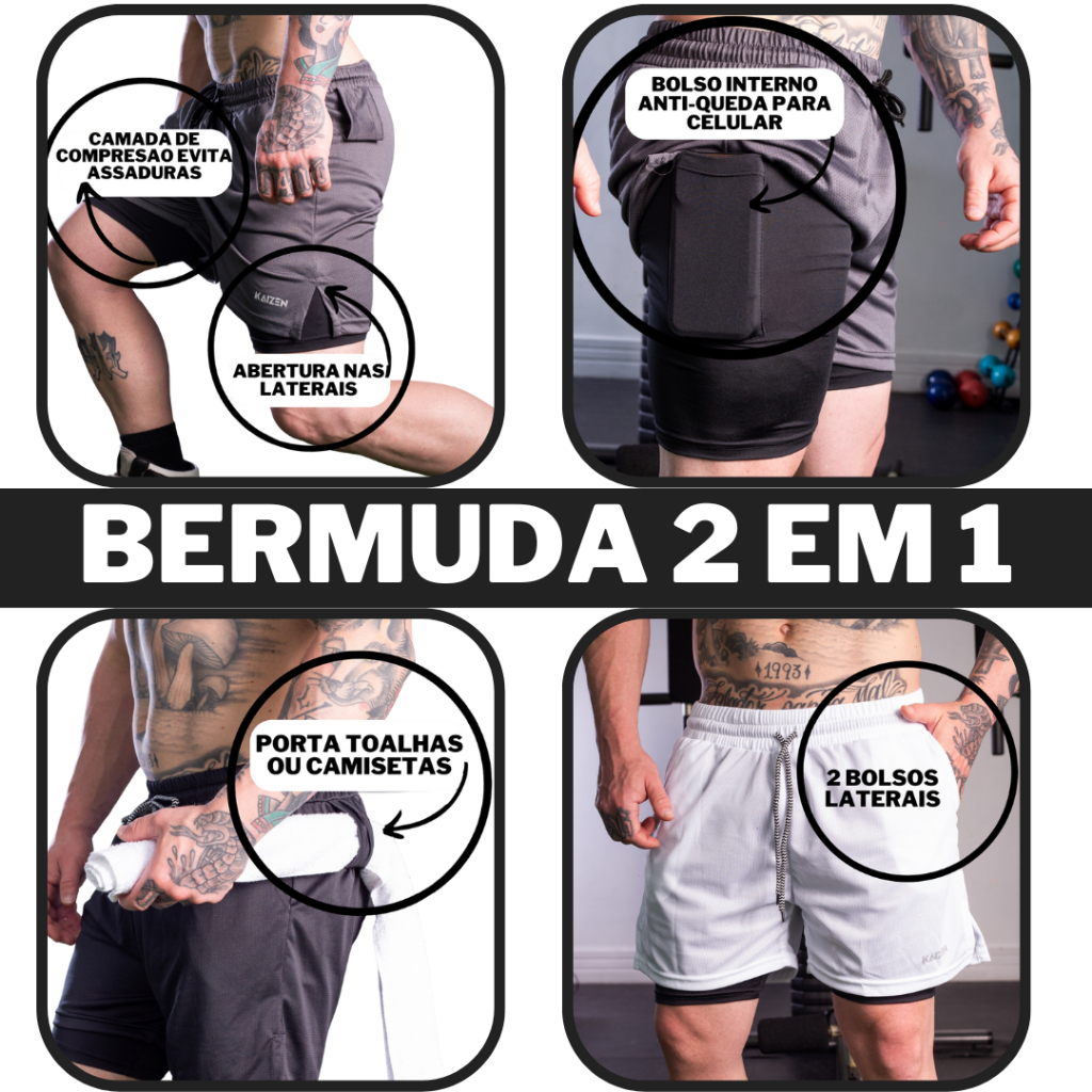 KIT 4 ou 1 bermuda masculina 2 em 1 kaizen dupla camada para academia