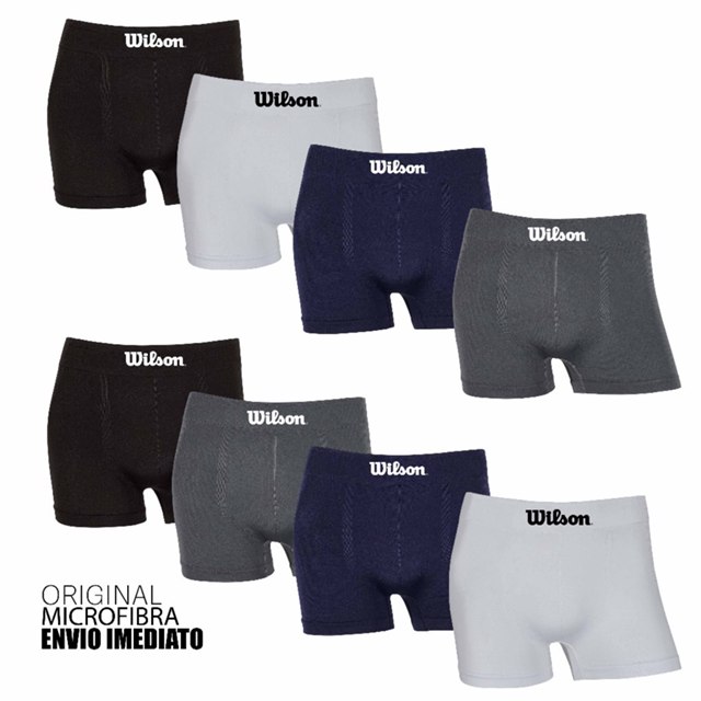 A cueca de MICROFIBRA da Wilson é de extrema qualidade. Contém 8 ou 4 cuecas. As cores serão enviadas de forma sortida conforme disponibilidade em estoque, sendo : Preto, Cinza, Azul e Branco. Seu design moderno conta com cós elástico personalizado da marca, garantindo firmeza sem apertar. Produto Original e Sem defeitos.