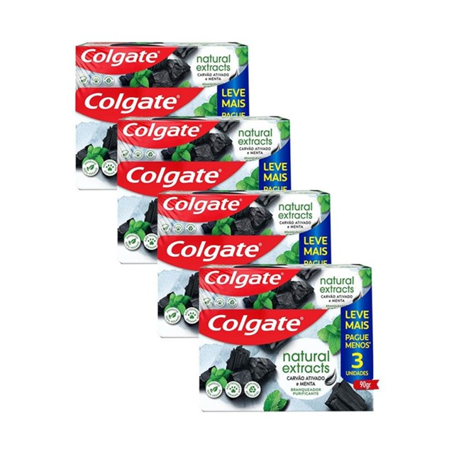 Kit 4 Pack Creme Dental Colgate Natural Extracts Carvão Ativado e Menta 90g