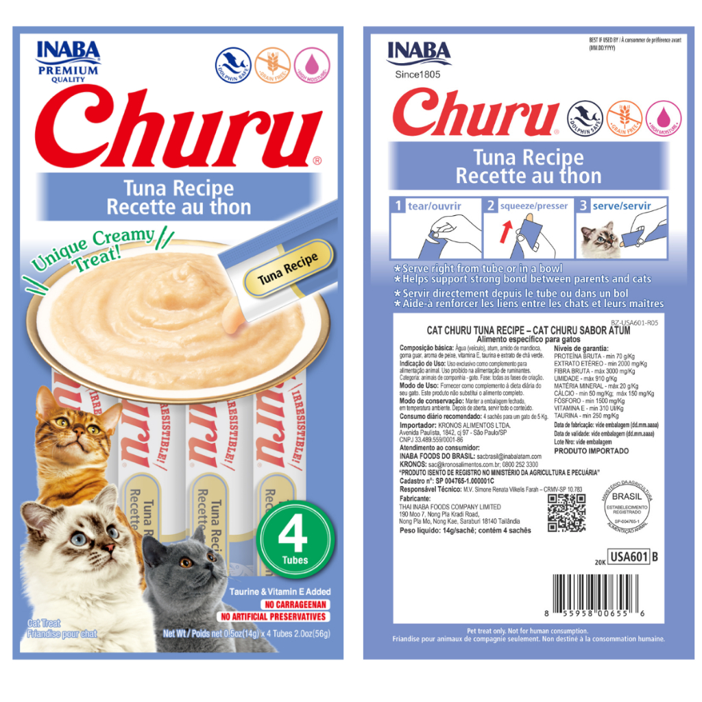 Kit 4 Pacote Petisco Churu para Gatos pure 4 sabores Salmao Atum Galinha Camarao