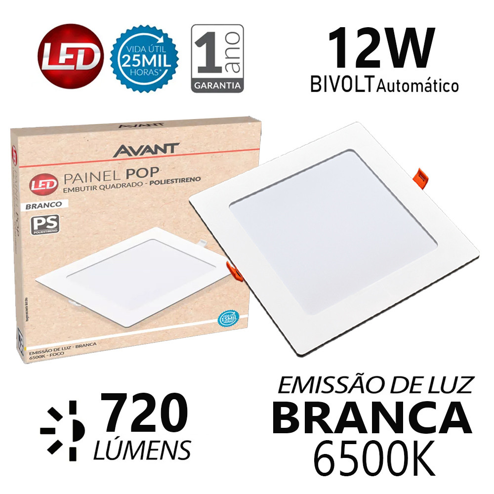 Você está comprando: 04 Painéis Pop Embutir 04 Caixas de papelão Painel LED Pop Embutir Quadrado 12W 6500K – Avant O Painel LED Pop Embutir Quadrado Avant é a solução ideal para quem busca iluminação moderna, uniforme e com excelente eficiência energética. Com design slim e discreto integra-se perfeitamente a ambientes residenciais, comerciais e corporativos, valorizando a decoração e proporcionando luz branca fria de alta qualidade. Com fluxo luminoso constante, mesmo em variações de tensão, oferece iluminação estável e confortável ao longo de toda sua vida útil — que chega a 25.000 horas. Além disso, seu baixo consumo de energia reduz custos e contribui para um uso mais sustentável. Características e Benefícios Iluminação homogênea com design leve e moderno Instalação embutida para acabamento limpo e sofisticado Baixo consumo de energia com alta eficiência luminosa Luz branca fria (6500K) ideal para foco, produtividade e ambientes bem iluminados Informações Técnicas: Código: 903009579 Modelo: Embutir Marca: Avant Tensão nominal: 100V a 240V. Emissão de Luz: Branco Frio Temperatura da Cor: 6500K Potência: 12W Fluxo Luminoso: 720 Lumens Eficiência Luminosa: 70 Lumens Watts Temperatura ambiente: -5°C a 40°C. Vida útil Aproximada: 25 Mil Horas Dimerizável: Não Índice de Proteção: IP20 Dimensões Aproximadas: 160x160mm Material: Plástico Garantia: 1 Ano ATENÇÃO: Certifique-se de que o transformador eletrônico não fique em contato direto com a luminária, pois a base funciona como dissipador de calor. O contato pode causar danos e interferências no funcionamento do transformador.
