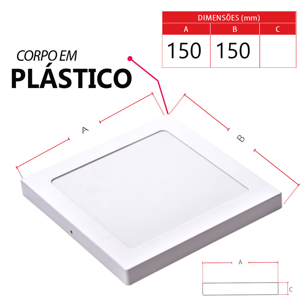 Kit 4 Painel LED Avant 12W Sobrepor Quadrado 6500K Branco Frio 720lm Bivolt IP20