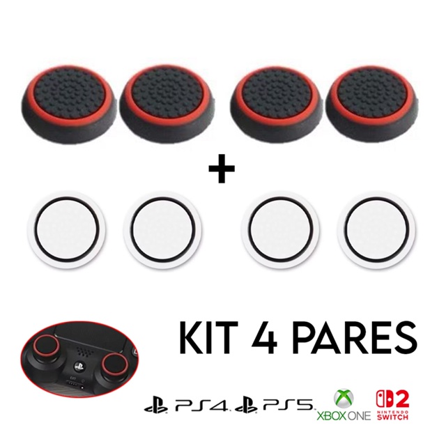 Kit 4 Pares Grip Botão 8 unidades de Silicone Ps3 Ps4 Ps5 Xbox Wii - Ótima Qualidade, Pronta Entrega