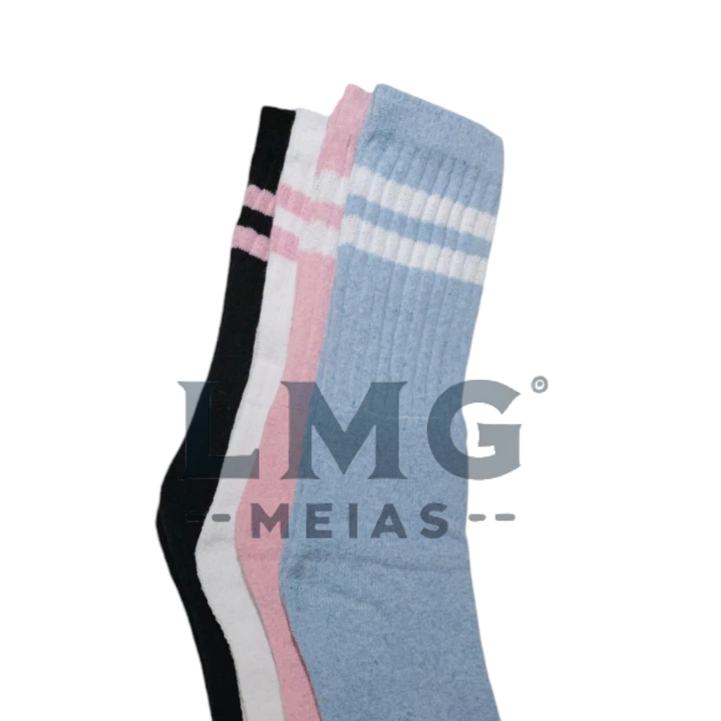 Kit 4 Pares Meias Femininas Cano Alto Listradas Coloridas Algodão