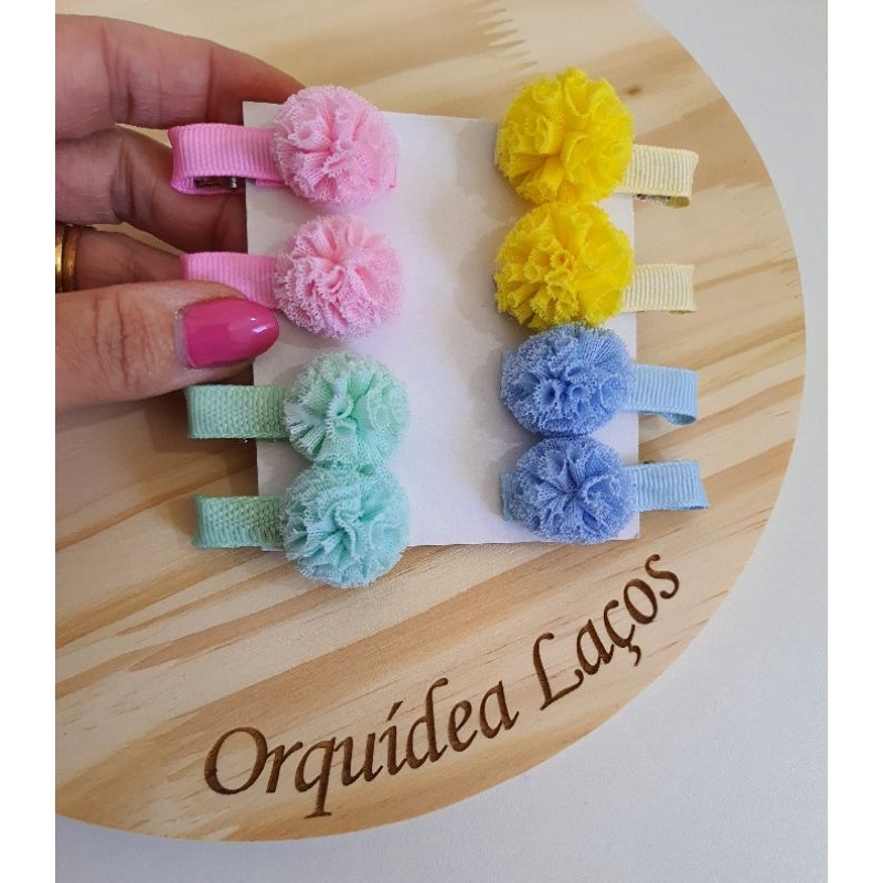 kit 4 parzinho de pompom ,hair clips bebe, parzinho pompom colorido, laço pompom de menina