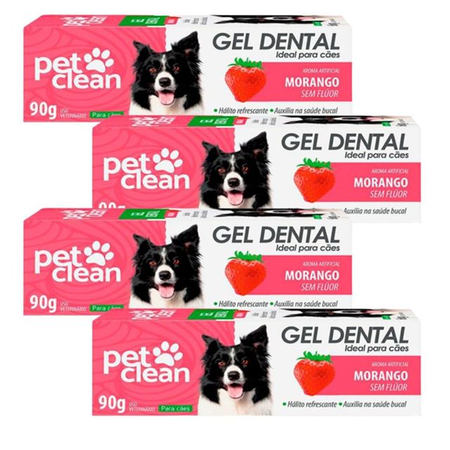 Kit 4 Pasta de Dente Cães e Gatos Pet Clean Gel Dental 90g - Morango