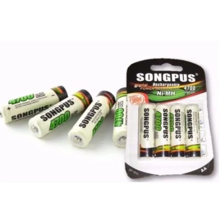 Pilha Songpus/Glacier Aa com 4 unidades Songpus/Glacier Ideal para brinquedos, controle remoto, relógios de parede, calculadoras, aparelhos eletrônicos, etc.. Carga de alta resistência R03P / 45, 1.2v 4700mAh desempenho de descarga com excelente custo-benefício