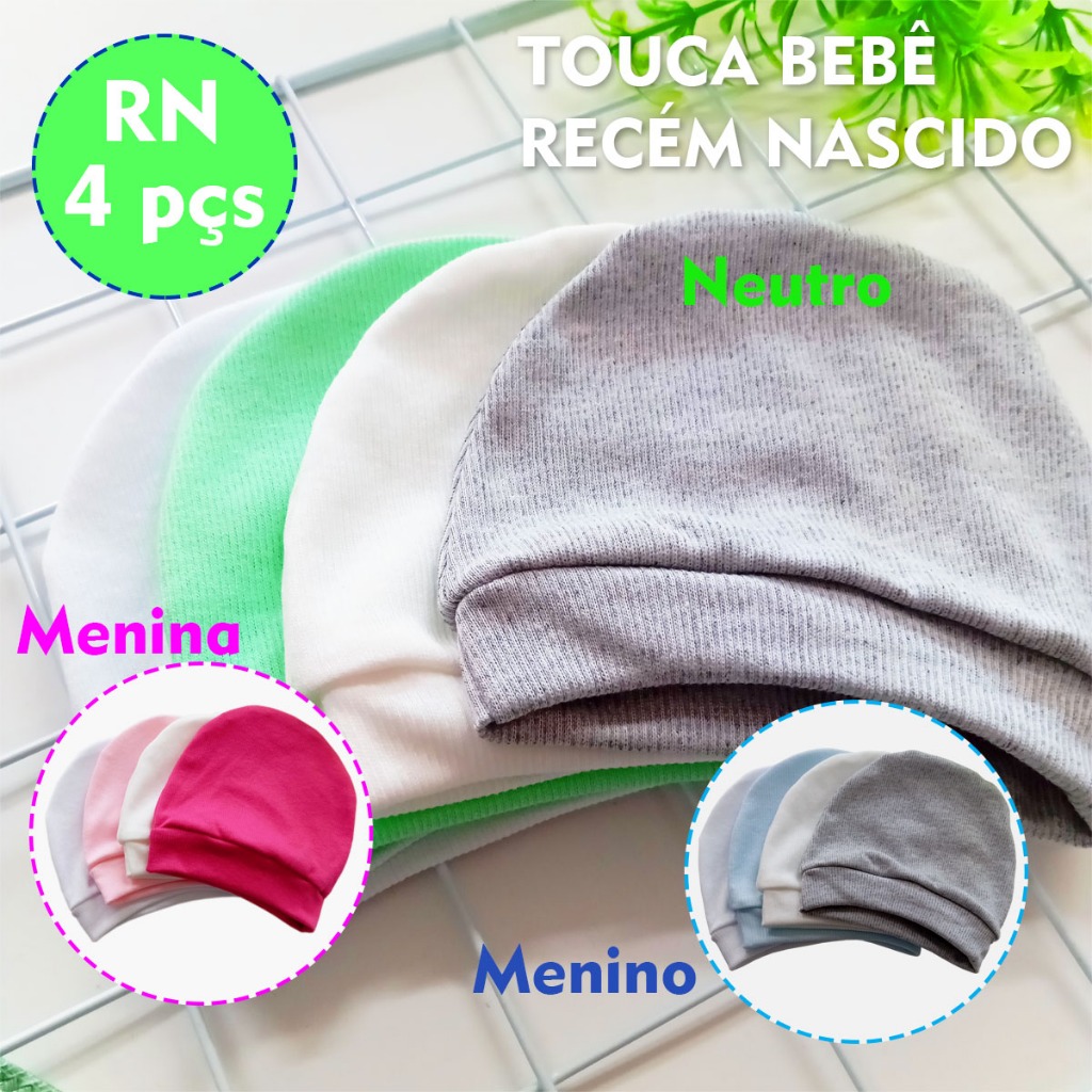 Kit 4 pçs Touca de Bebê Menino Menina Bebe Recém Nascido Presente Enxoval Maternidade