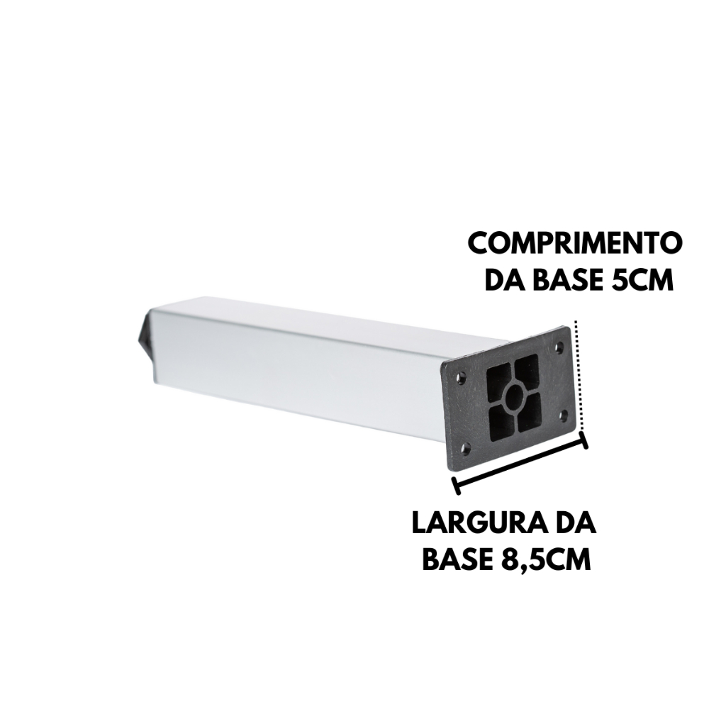 Pé de alumínio em formato torre, muito resistente e com altura de 25cm possuindo uma regulagem até 26cm para pisos descaídos. A fixação é feita por parafuso soberbo, de fora para dentro do móvel. Acompanha parafusos, necessários para a instalação. INFORMAÇÕES TÉCNICAS Tipo: Pé para Móveis Material: Alumínio Capacidade de carga (unitário): 100kg Cor: Fosco Conteúdo da embalagem: 4 Pés; 16 parafusos 4x16mm