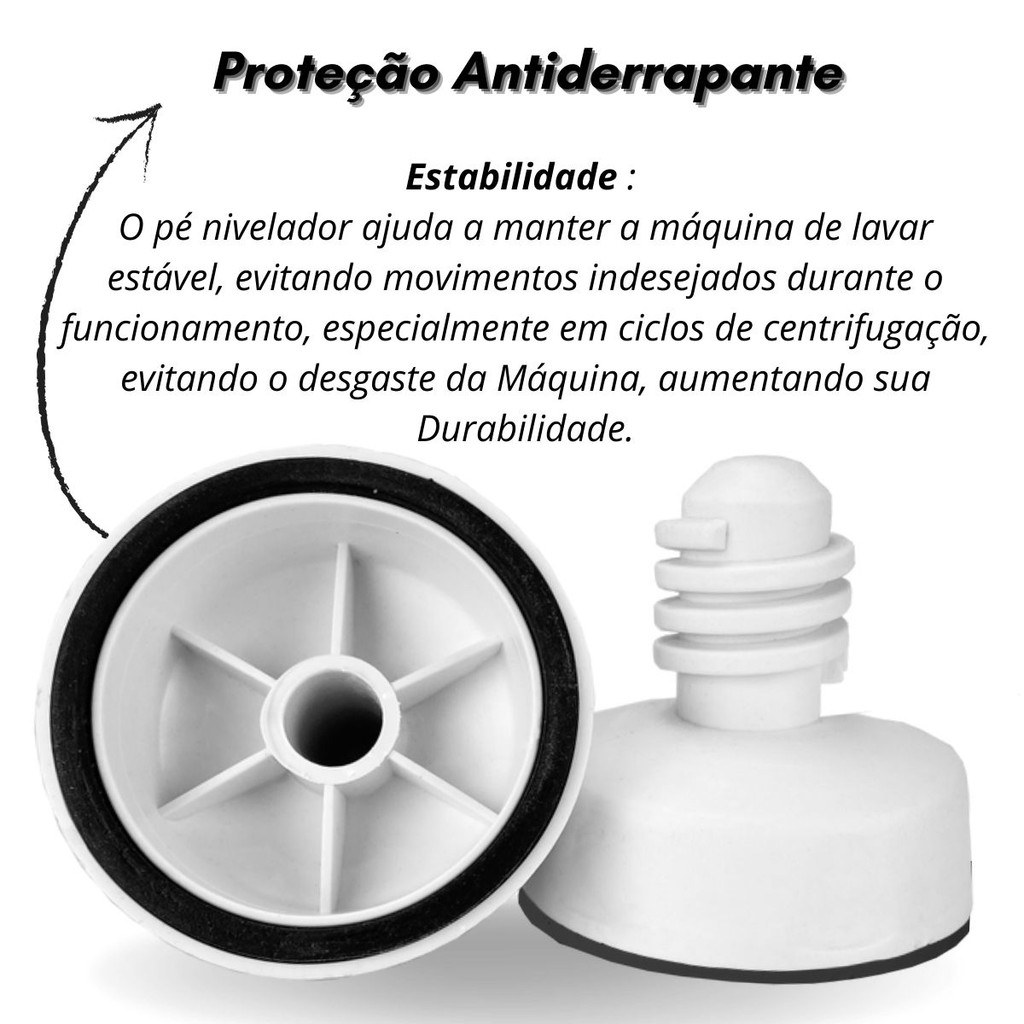 Kit com 4 unidades de Pé Nivelador para Lavadora e Secadora de Roupas - Similar ao original Marca Compatível: Brastemp & Consul Aplicação: Lavadora de Roupas Contém: 4 Unidades - Pé nivelador CONSUL: CWB08AB,CWB09AB, CWC08AB, CWC10AB, CWE08AB, CWE09AB, CWE10AB, CWE11AB, CWG11AB, CWG12AB, CWH11AB, CWH12AB, CWI06B, CWI07A, CWK11AB, CWK12AB, CWL10B, CWL75A, CWN07A, CWS11AB,CWS12AB BRASTEMP: BWB08A, BWB08AB, BWB11AB, BWB22A, BWC06A, BWC07A BWC08A, BWC09AB, BWC10A, BWC10BB, BWC11AB, BWF08B BWG10A, BWG11AB, BWG12AB, BWH11AB,BWH12AB, BWJ09AB BWJ11AB, BWK11AB, BWL09A, BWL09B, BWL11AB, BWM06A BWM08A, BWM08AB, BWQ12AB, BWQ24A, BWS09AB, BWS11AB BWT12AB, BWU11AB 🛠Silêncio e estabilidade para sua lavadora: pés niveladores que mantêm a paz no seu lar 🙋 Qualquer dúvida sobre este produto, entre em contato conosco pelo chat !