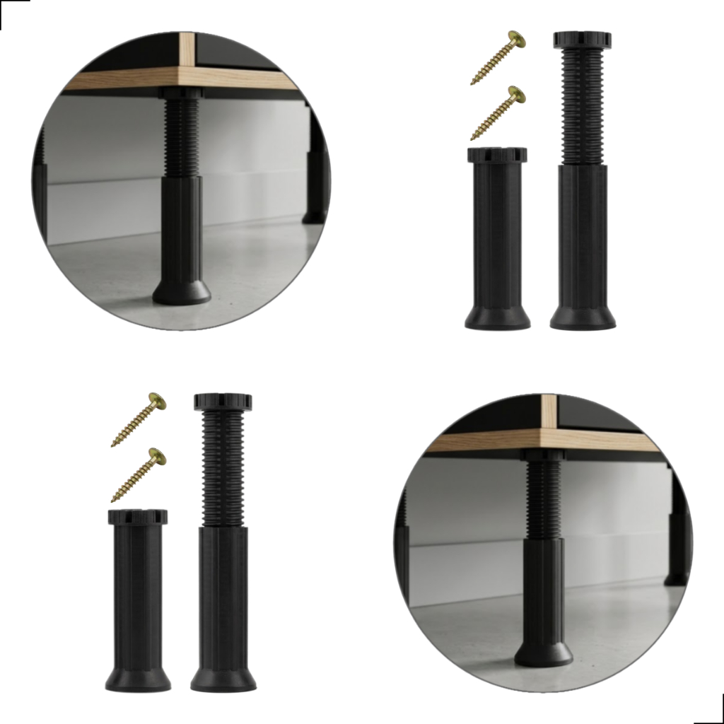 Kit 4 Pé Preto 13 A 20cm Regulável Armário Balcão Móveis Pia