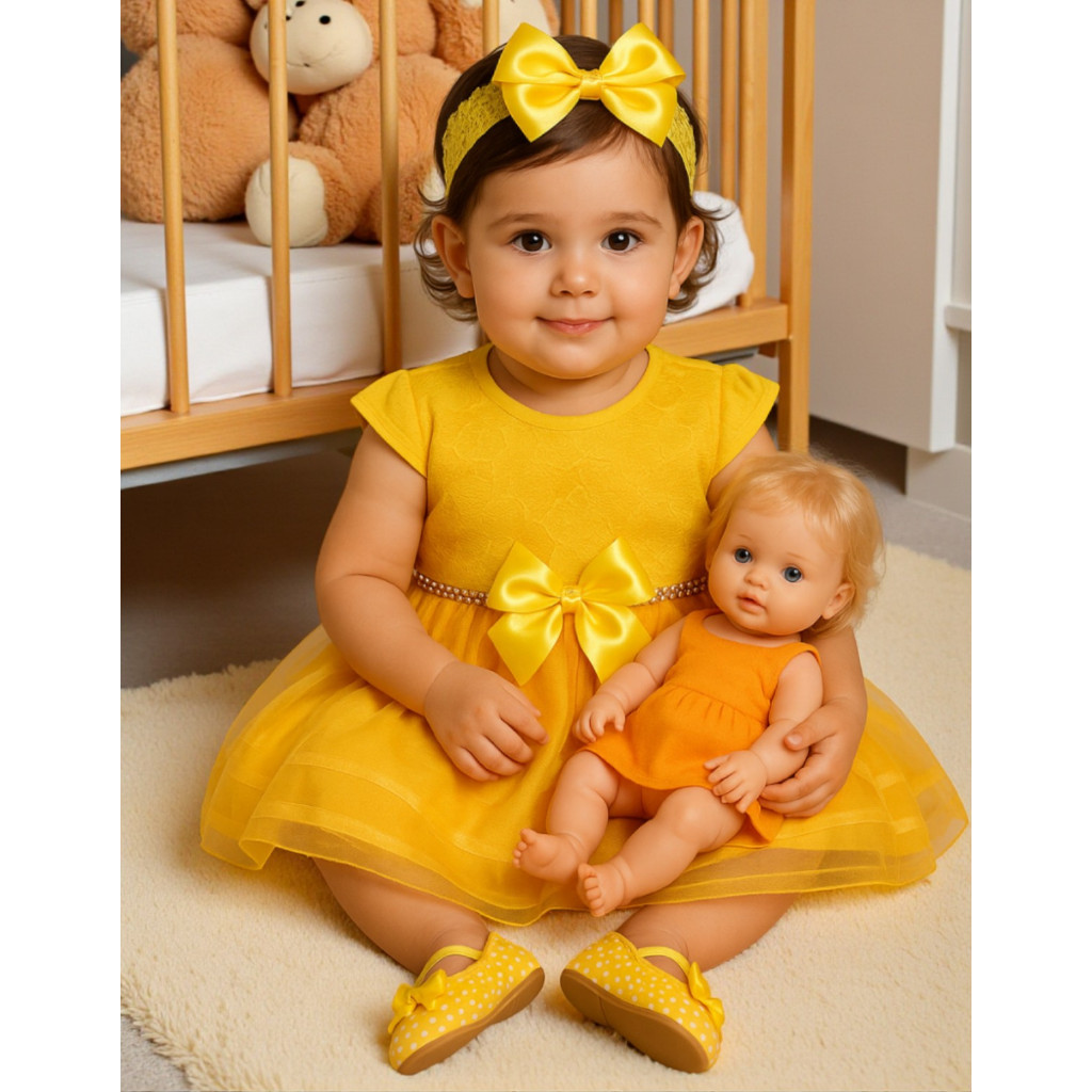 Conjunto Encantador para Momentos Mágicos da Sua Princesa *Imagine a sua princesa encantando a todos com um visual de tirar o fôlego. Este conjunto foi pensado para unir delicadeza, conforto e encanto em cada detalhe. *Vestido: renda delicada e elegante, com acabamento impecável que valoriza a beleza da sua pequena sem abrir mão do conforto. Acessórios: 1 laço delicado e 1 sapatinho combinando, completando o look com harmonia para ocasiões especiais. Versatilidade: ideal para festas, batizados, Ano Novo, Natal, casamentos, aniversários e todas as celebrações que merecem um toque de conto de fadas. Conforto e qualidade: cada peça foi pensada para oferecer leveza durante toda a celebração, permitindo que ela aproveite cada sorriso e momento especial. Valor emocional: não é apenas uma roupa — é uma lembrança para toda a vida, registrando sorrisos e memórias que durarão para sempre. Por que escolher: *Confiança em acabamento e materiais que priorizam o bem-estar da criança. Estampa e cores selecionadas para facilitar combinações e adaptar-se a diferentes temas de festa. Peças em quantidade limitada, para manter o encanto único de cada momento. Convite à ação: Garanta agora este conjunto encantador e transforme qualquer evento em um verdadeiro conto de fadas. Corra, as peças são limitadas e podem esgotar rapidamente! ************************ Perguntas Frequentes ************************ *Nossa loja está no Brasil. Pagamento confirmado até às 13h, envio feito no mesmo dia (conforme disponibilidade). O comprador não pagará imposto de importação. Enviamos cores e estampas variadas por pedido. Não é possível misturar tamanhos em um único pedido.