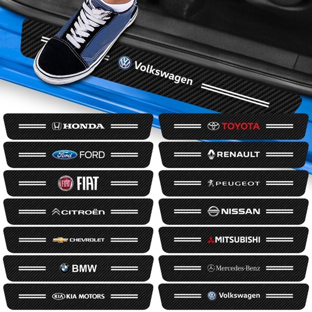 Kit 4 Peças Adesivo Soleira de Porta Carro Modelo Proteção Fibra de Carbono Anti Arranhões Varios Modelos