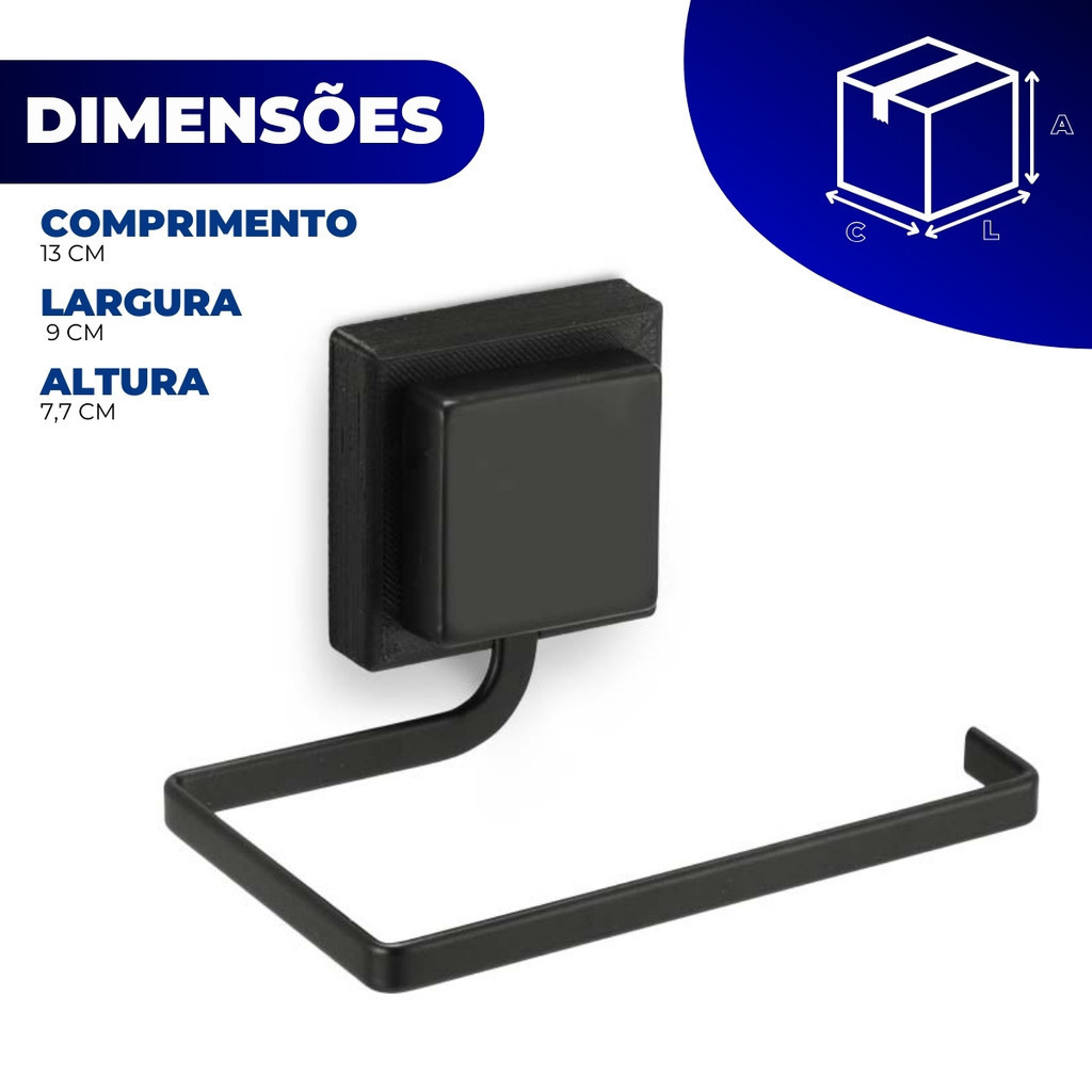 Kit 4 Peças Banheiro Papeleira Saboneteira Gancho Toalheiro De Banho 3m Dupla Face Preto Arthi