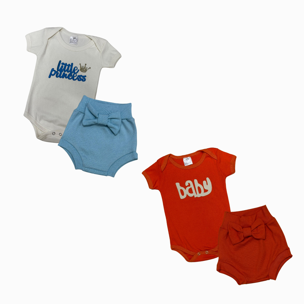 kit 4 Peças Body Infantil Feminino Shorts Laço Verão Bebê Menina - 2 Conjuntos Sortidos