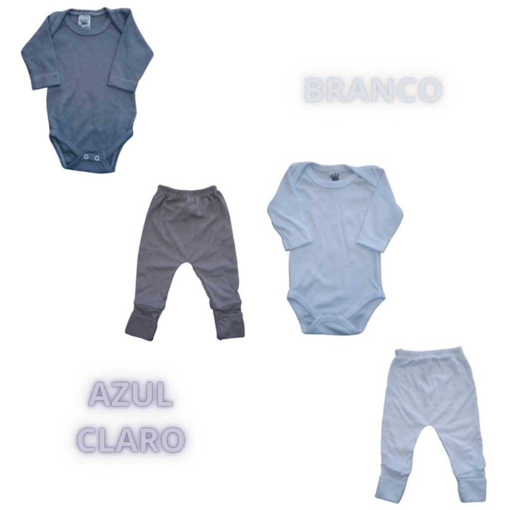 Kit 4 peças Conjunto Body e Mijão canelado 2 body 2 mijão enxoval roupa de bebê