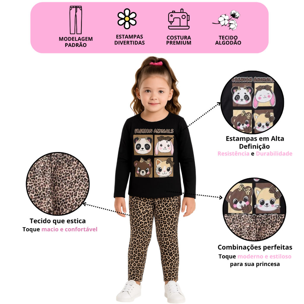 Kit Sortido composto por 2 Conjuntos Meia Estação Kit composto por 4 peças: 2 Blusas e 2 Leggings Produzidos em malha 100% algodão Estampas variadas e encantadoras IMPORTANTE! Não há opção de escolha dos modelos. Os modelos enviados serão sortidos conforme a disponibilidade em estoque. Envios em 24 horas Garanta já o seu kit e proporcione o máximo de conforto e estilo!