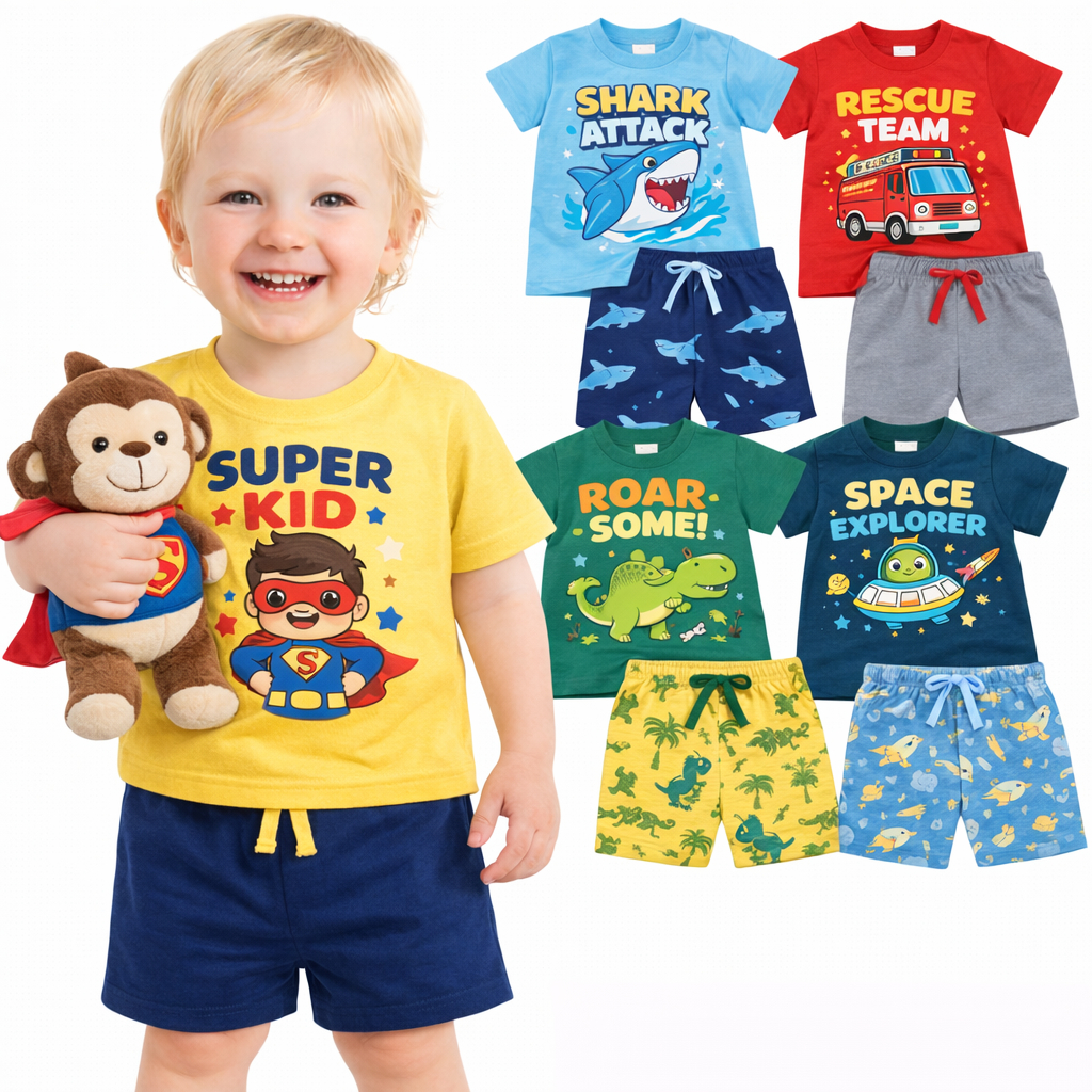 Kit 4 Peças De Roupa Infantil Menino Verão Kit 2 ou 1 Conjunto de Verão Menino Moda Praia Entrega Rapida Pronta Entrega
