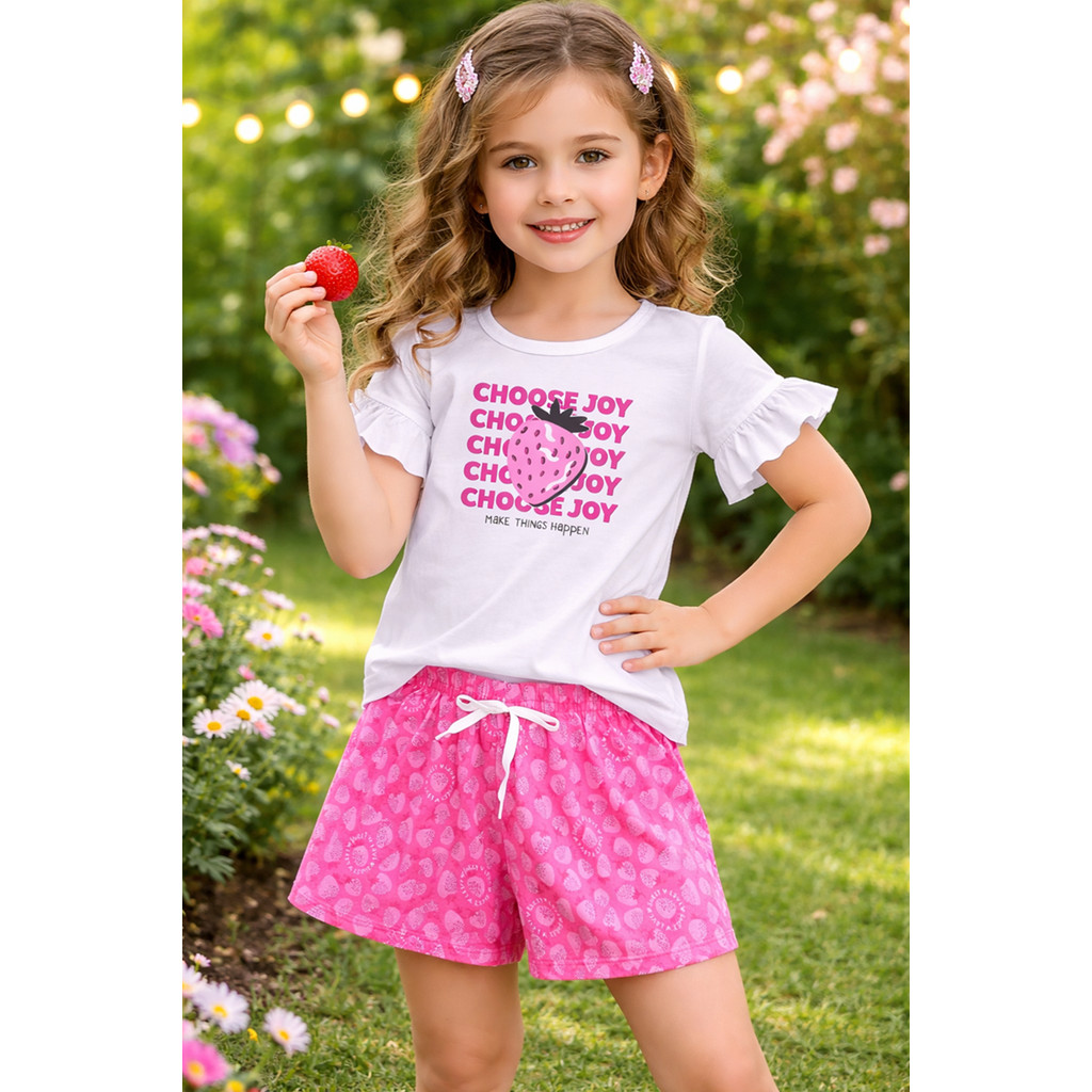 Estilo, praticidade e conforto para o dia a dia das meninas. Além de estiloso, os conjuntos oferecem um ajuste confortável e perfeito para a rotina ativa de uma criança. A composição de materiais leves e respiráveis assegura que sua filha se mantenha fresca, mesmo nos dias mais quentes. A qualidade Yossi é reconhecida, e você pode confiar que o tecido é resistente e ideal para a pele sensível das crianças. Sem dúvida, a opção perfeita para as mães que buscam praticidade sem abrir mão do estilo para suas filhas. Ofereça à sua filha um visual moderno e confortável, pronto para os melhores momentos do verão! Kit 4 peças , composto por 2 blusas + 2 shorts Blusas confeccionadas em 100% algodão – leves, respiráveis e macias. Shorts confeccionados em Moletinho e Poliflex – resistentes e confortáveis, ideais para acompanhar a rotina ativa das crianças. ATENÇÃO: Esta tabela é apenas uma referência e as medidas apresentadas podem não coincidir com as suas. Os conjuntos podem variar até 3cm, sempre aconselhamos comprar um tamanho maior. CUIDADOS: • Lavar com núcleos similares; • Não deixe molho; • Não usar alvejante; • Não secar na máquina; • Não passe sobre a estampa; • Não esfregar a mão na peça; • Para informações fornecidas, siga as instruções contidas na etiqueta do produto.