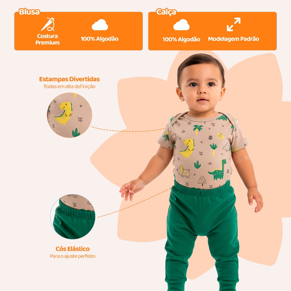 Kit Sortido com 2 Body e Calças para Bebê Menino! 👕🩳 Perfeito para o conforto diário e momentos especiais com seu pequeno. ✅ Conjunto Completo: 2 body + 2 calças estilo mijão. ✅ Tecido Confortável: Confeccionado em 100% algodão. ✅ Gola Transpassada: Praticidade para vestir e trocar seu bebê. ✅ Punho em Ribana: Evita que a calça fique folgada ou apertada. ✅ Cores Vibrantes e Estampas Divertidas: Detalhes cuidadosamente pensados. Sugestão de Tamanho por Idade: Tamanho P: Indicado de 1 a 3 meses Tamanho M: Ideal de 3 e 6 meses Tamanho G: Ótimo de 6 a 9 meses Os tamanhos podem variar de acordo com o biotipo/tamanho de cada criança. 👉 Consulte a tabela de medidas nas imagens, ou na guia de tamanho da Shopee. IMPORTANTE! ⚠️ Não há opção de escolha dos modelos. ⚠️ Os modelos enviados serão sortidos conforme a disponibilidade em estoque. ⚠️ Na compra de 7 kits do mesmo tamanho, pode haver repetição de cor ou estampa. Envios em 24 horas 🚛 - Para todos os pedidos realizados antes das 13h. Adquira já o kit body + calça para bebê em tecido 100% algodão e proporcione o melhor para o seu pequeno.