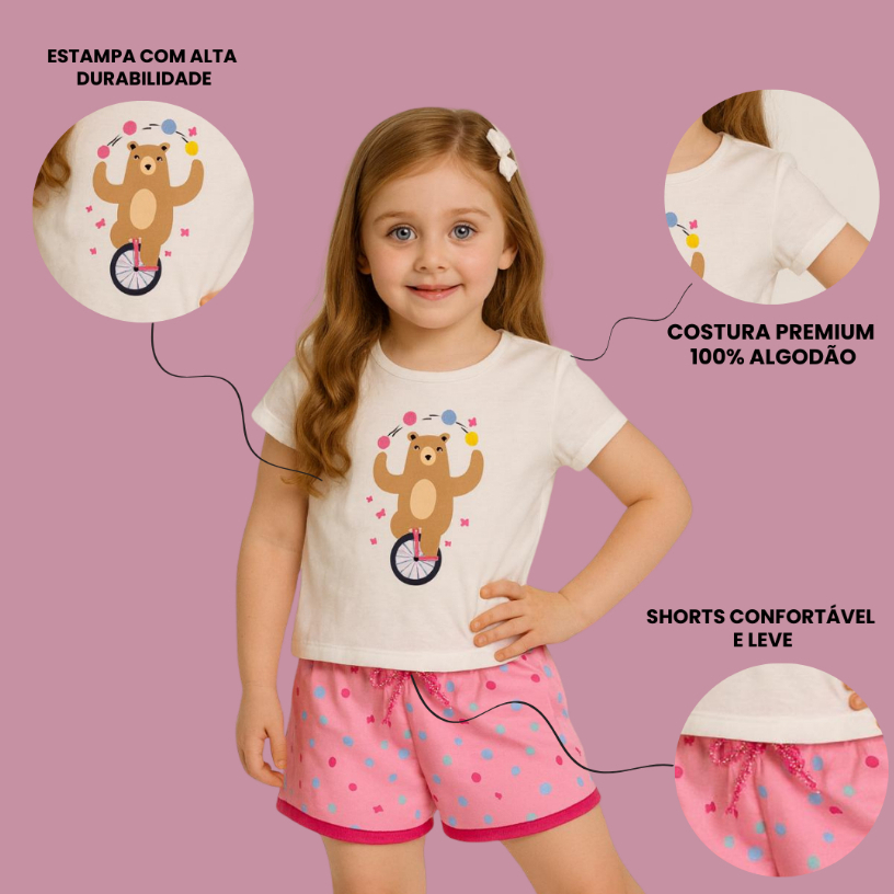 👧 Kit Infantil Feminino – 4 peças – 100% Algodão SORTIDOS Deixe o guarda-roupa da sua pequena ainda mais estiloso e confortável com este kit super fofo composto por 2 conjuntos infantis (total de 4 peças) feitos em 100% algodão. 👕 Camisetas: 100% algodão macio, com estampas modernas e cores vibrantes. 👖 Shorts: também 100% algodão, com cós elástico para maior conforto e liberdade de movimento, além de cordão decorativo. IMPORTANTE! Não há opção de escolha dos modelos, os conjuntos serão os do video. Os modelos enviados serão sortidos conforme a disponibilidade em estoque. ✔️ Ideal para o dia a dia, passeios e momentos de diversão. ✔️ Tecido leve, respirável e resistente, garantindo muito conforto para as crianças.