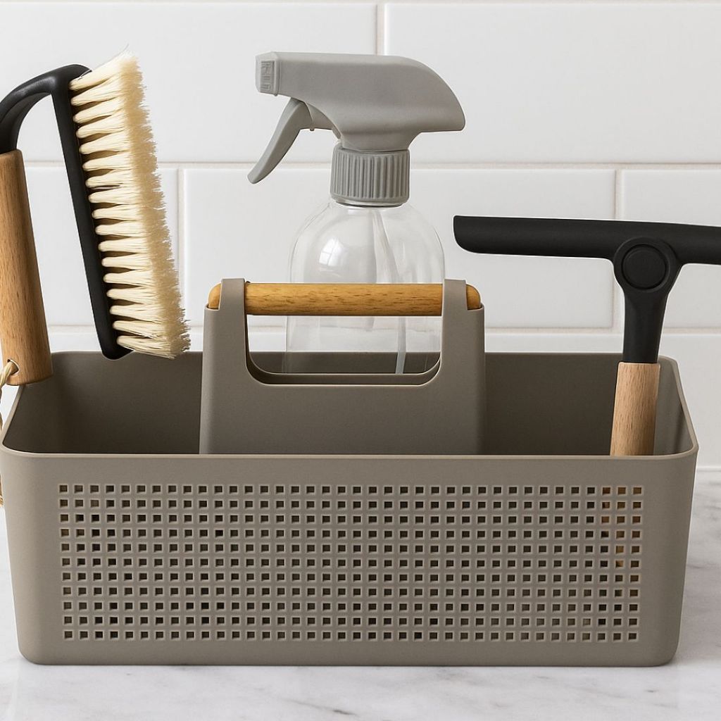 Kit Limpeza 4 Peças – Escova Multiuso, Organizador, Borrifador e Rodo Dobrável com Cabo de Bambu O Kit Limpeza 4 Peças foi desenvolvido para facilitar o dia a dia com praticidade, eficiência e um design moderno que deixa a rotina mais leve e organizada. Ideal para lavanderias, cozinhas, banheiros e para qualquer ambiente da casa. O que acompanha o kit: 1. Escova de Limpeza Multiuso com Cabo de Bambu Perfeita para pia, azulejos, pisos, sapatos e superfícies diversas. Cerdas flexíveis, que limpam sem riscar. Cabo em bambu, leve, resistente e confortável de segurar. Design ergonômico que garante firmeza durante o uso. Possui furo para pendurar, facilitando a organização. Bambu: material durável, higiênico e sustentável. 2. Organizador Multiuso Flow Inspirado na fluidez da água, trazendo leveza e funcionalidade ao uso. Ideal para armazenar produtos de limpeza, panos e acessórios. Estrutura resistente com alça prática para transporte. Mantém tudo organizado e ao alcance das mãos. 3. Borrifador em Plástico Resistente Ideal para produtos de limpeza, água, aromatizadores ou para uso geral. Material plástico forte e durável, com pulverização eficiente. Design leve, prático e fácil de manusear. 4. Rodo de Pia Dobrável com Cabo de Bambu Remove o excesso de água de pias, vidros e bancadas. Dobrável, alcança áreas difíceis e economiza espaço ao guardar. Extremidade em silicone, garantindo limpeza eficiente sem arranhar. Possui botão central para ajustar o ângulo conforme a necessidade. Cabo ergonômico em bambu para maior conforto. Por que escolher este kit? Praticidade para o dia a dia. Design moderno e funcional. Materiais resistentes, duráveis e fáceis de higienizar. Ideal para qualquer ambiente da casa. Garantia do vendedor: 30 dias