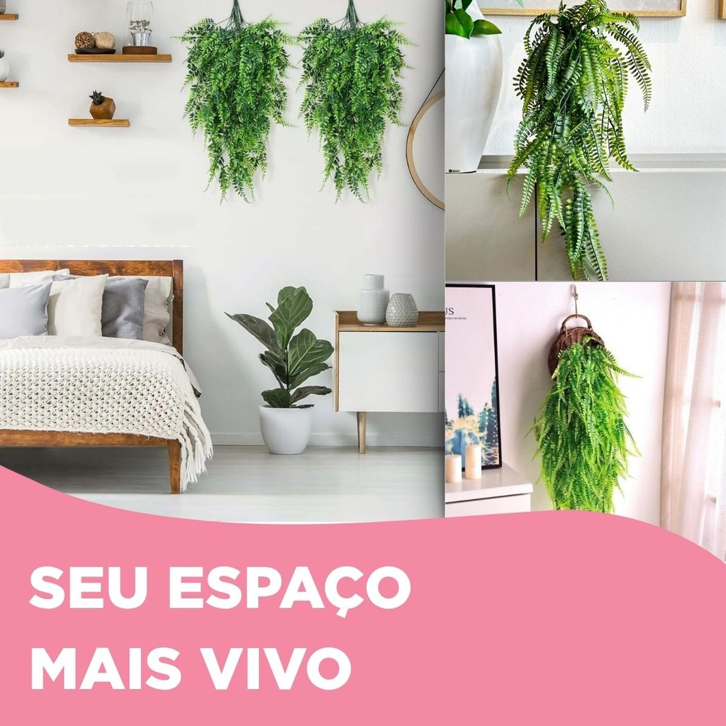 Kit 4 Pendente Samambaia 80cm Artificial Toque Real Folhagem Realista Decorativa
