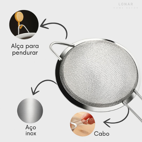 Kit 4 Peneira Coador em Aço Inox Multifuncional Para Alimentos Frutas Farinha uso Cozinha