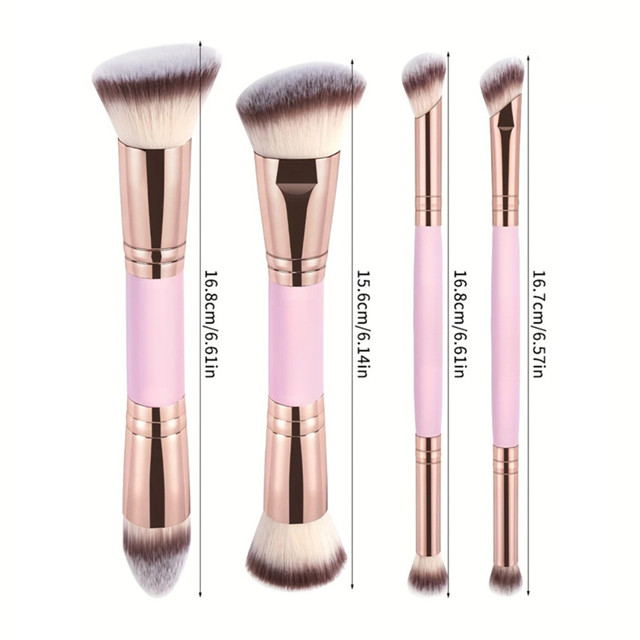 Kit 4 Pincéis de Maquiagem Multifuncionais Duo Ponta – Pincéis Faciais para Base, Corretivo e Blush