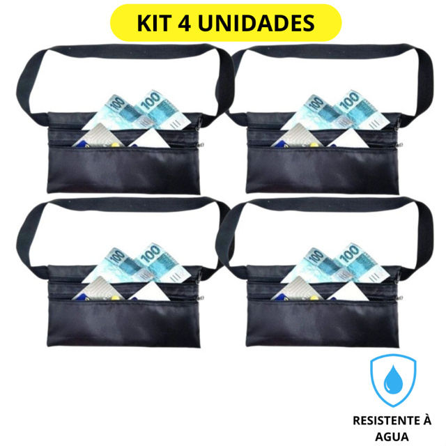 KIT 4 Pochetes Porta Dolar Doleira Anti-furto Escondido Celular Dinheiro Preta