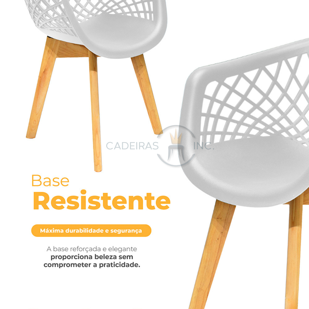 Kit 4 Poltronas Cadeiras Jantar Cozinha Sala Varanda Area Gourmet Web Branca Wood Base Madeira