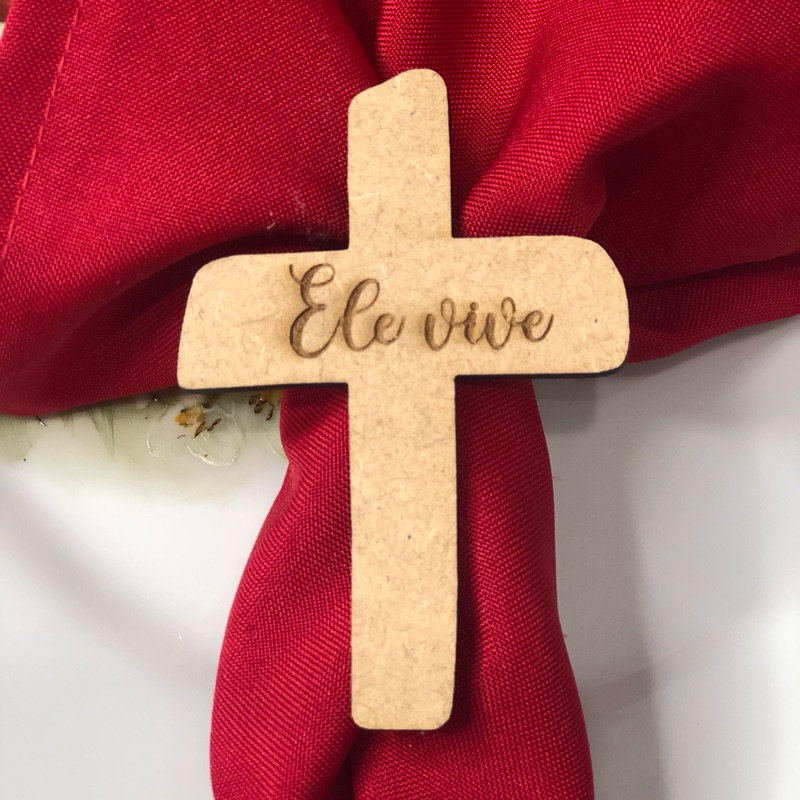 Kit 4 Porta Guardanapos Cruz Ele Vive Enfeite Decoração Anel Mesa Posta Páscoa Cristã