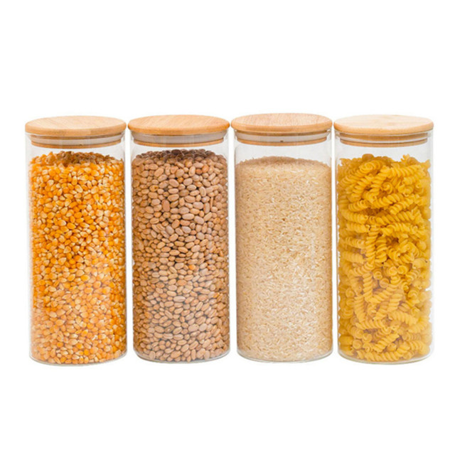 Kit 4 potes de vidro 1,8L tampa de bambu herméticos redondos