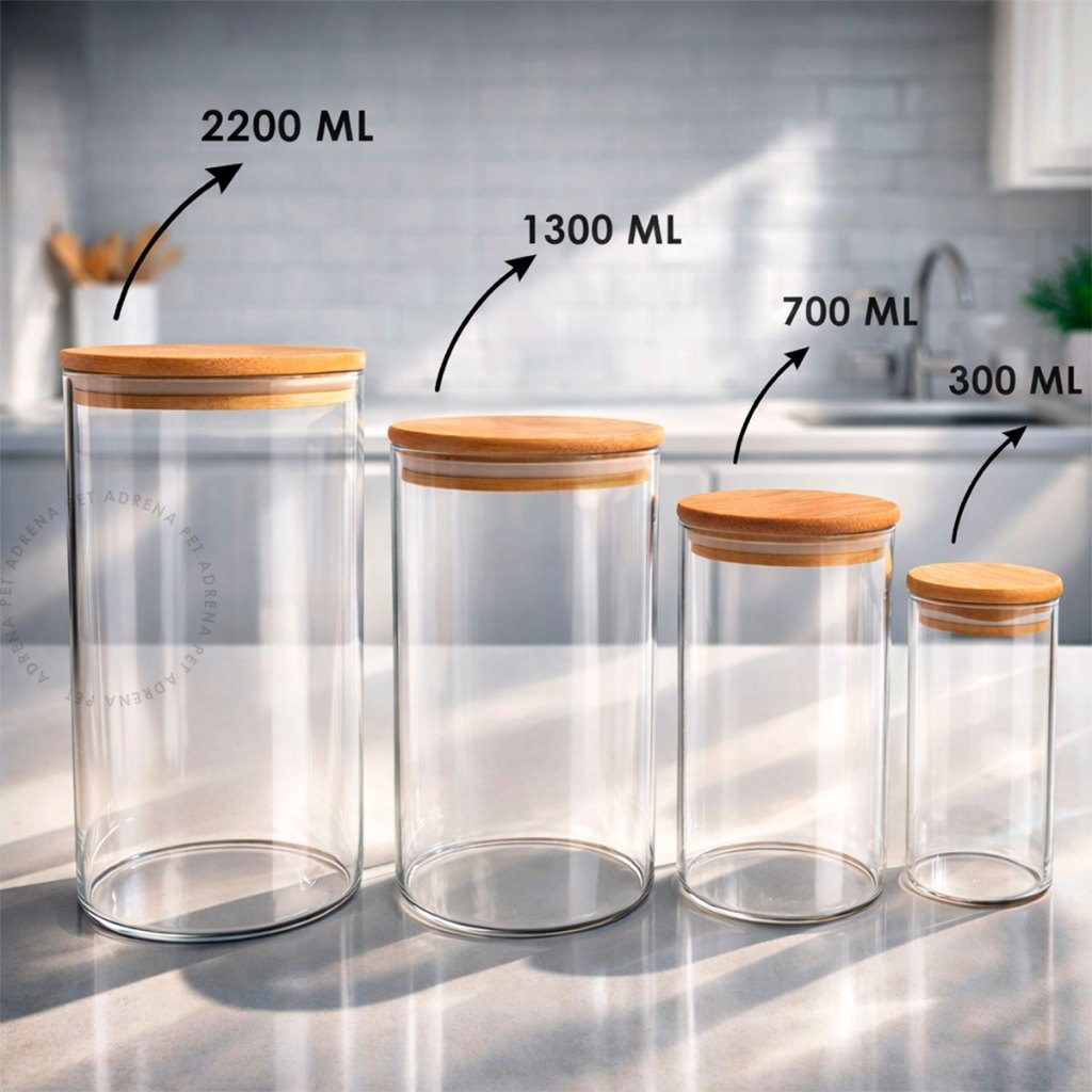 ✨ Organize sua cozinha com elegância e praticidade! 🫙 Kit Potes de Vidro Herméticos com Tampa de Bambu Beleza, organização e conservação em um só produto! Transforme sua cozinha com esses potes de vidro modernos e sofisticados. Ideais para manter seus alimentos sempre frescos, organizados e visíveis, deixando o ambiente mais bonito e funcional. ✔️ Vedação eficiente com tampa de bambu ✔️ Vidro resistente e durável ✔️ Design clean e elegante ✔️ Ideal para mantimentos, grãos, café, biscoitos e doces ✔️ Organização prática e visual sofisticado 📏 Tamanhos disponíveis GG – 2200ml Diâmetro: 12 cm | Altura: 23 cm G – 1300ml Diâmetro: 10 cm | Altura: 20 cm M – 700ml Diâmetro: 8 cm | Altura: 17 cm P – 300ml Diâmetro: 6 cm | Altura: 14,1 cm 💎 Perfeito para: • Cozinha organizada e moderna • Armazenar mantimentos com estilo • Decoração minimalista • Despensa prática e funcional 🚀 Deixe sua cozinha linda e organizada hoje mesmo! Garanta já seus potes de vidro e leve mais praticidade, conservação e sofisticação para o dia a dia. 🛒 Estoque limitado — aproveite agora!
