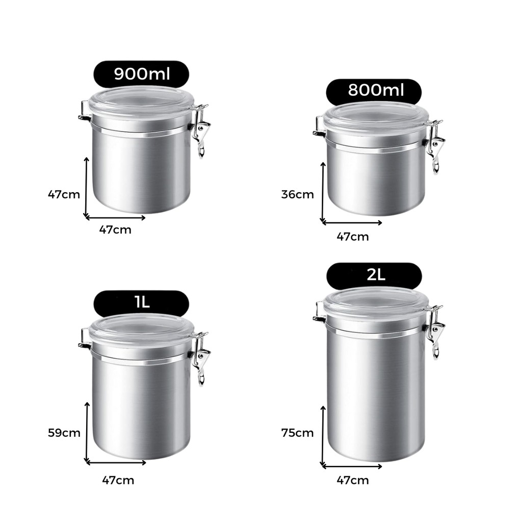 Kit 4 Potes herméticos de aço inoxidável com tampa transparente, Potes para açúcar, farinha, doces, biscoitos